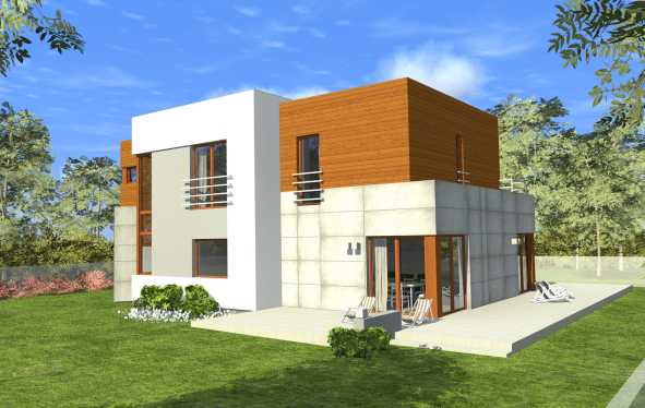 Dom jednorodzinny w technologii ścian murowanych wzmacnianych trzpieniami żelbetowymi w ciekawej aranżacji architektonicznej.